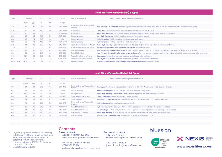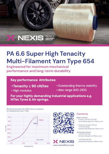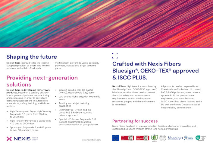 Nexis Fibers is a major global player in industrial yarns. The company designs, develops and delivers its wide range of products and services to its customers in Europe and worldwide in a diversity of key market segments: airbags and weaving, tires and MRG, industrial yarns for ropes and nets and, finally, polymers 6.10 and 6.12.